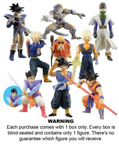 The 9th volume of the popular Super Character Spirit DragonBall Z mini figure series. Each blind box comes with ONE mini figure. *** Each blind box comes with ONE mini figure. NOTE: Since it's a blind box product, there's no guarantee which figure you will receive. Each figure is about 2", but due to the unique design of the figures, the actual product may be smaller or bigger than stated. ** This volume is made up of 9th figures (EACH SOLD SEPARATELY): Goku (2 styles), Gohan, Vegeta, Trunks, Mecha Freeza, Tullece, Master Roshi, and Paikuhan. For age 15 and up only. This product was designed and marketed for the Japanese market. Imported from Japan. Like many US products, it's manufactured in China. Meet Japanese ST "Safe Toy" standard.